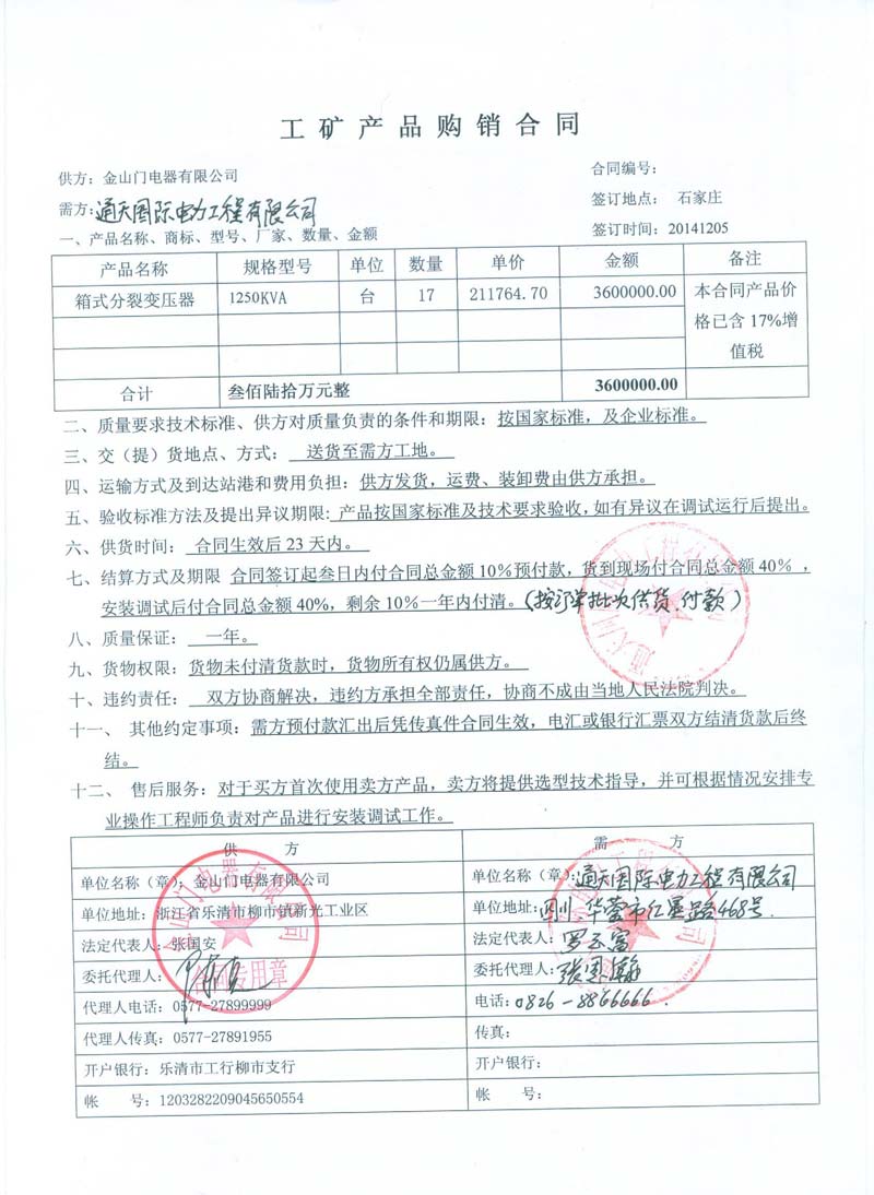 公司生產(chǎn)基地現(xiàn)有樂清,麗水及江蘇太倉三塊生產(chǎn)基地。公司擁有專業(yè)的技術(shù)骨干力量,專業(yè)生產(chǎn)10kv,35kv,110kv,220KV級的油浸式電力變壓器,10KV,35KV級的絕緣樹脂澆注干式變壓器,H級絕緣環(huán)保型干式變壓器,6kv,10kv級礦用移動(dòng)變電站,以及礦用油浸式三相變壓器,公司于2011年開始建成投產(chǎn)預(yù)裝式變電站,組合式變電站,風(fēng)能箱式變電站,高低壓開關(guān)柜及輸配電設(shè)備,年生產(chǎn)能力達(dá)1000萬KVA,產(chǎn)品廣泛使用于電力,鐵路,礦業(yè),船運(yùn)等領(lǐng)域。
