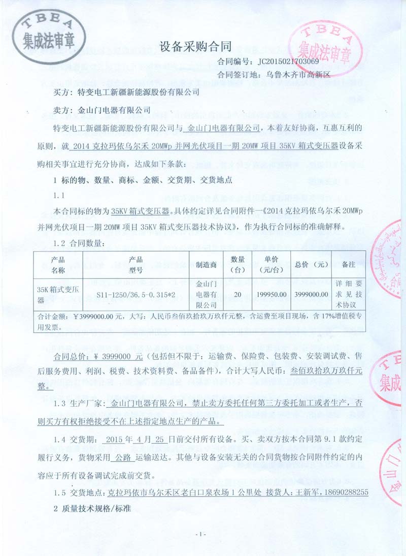 作為一個(gè)專業(yè)生產(chǎn)電力設(shè)備的現(xiàn)代企業(yè),我們始終恪守誠(chéng)信、互惠的經(jīng)營(yíng)原則,實(shí)現(xiàn)客戶、企業(yè)與社會(huì)效益最大化的追求目標(biāo);我們始終恪守"創(chuàng)新為本"的經(jīng)營(yíng)理念,把創(chuàng)新作為滿足客戶需要、解決自身發(fā)展的根本,創(chuàng)新始終貫穿企業(yè)一切工作之中,也是我們競(jìng)爭(zhēng)的源泉;