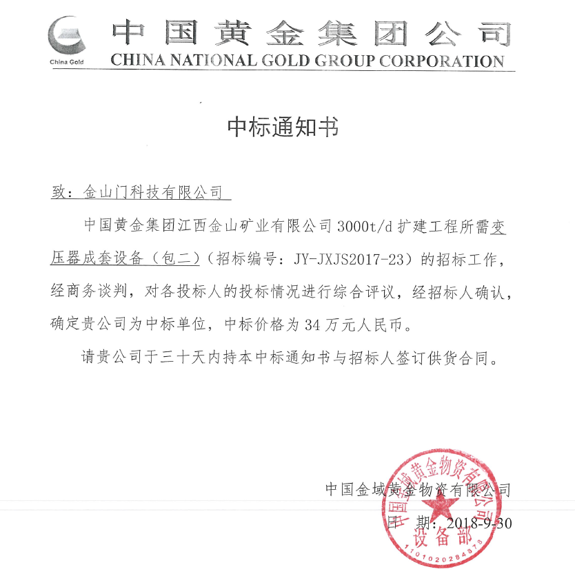 根據(jù)《中華人民共和國招標(biāo)投標(biāo)法》以及有關(guān)法律法規(guī),遵循公開、公平、公正和誠實(shí)信用的原則,中國金域黃金物資有限公司受中國黃金集團(tuán)委托,就中國黃金集團(tuán)江西金山礦業(yè)有限公司3000t/d擴(kuò)建工程變壓器設(shè)備進(jìn)行國內(nèi)公開招標(biāo),歡迎符合相關(guān)資質(zhì)條件的潛在投標(biāo)人前來參加投標(biāo)。