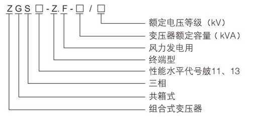 1.1 ZGS11-Z.F-□/□系列風(fēng)力發(fā)電用組合式變壓器(以下簡稱“風(fēng)力變”)。適用于10kV、35kV終端供電系統(tǒng)中,作為變電、配電、計量、控制和保護(hù)裝置。風(fēng)力變內(nèi)除裝有變壓器外,高壓側(cè)還裝有四