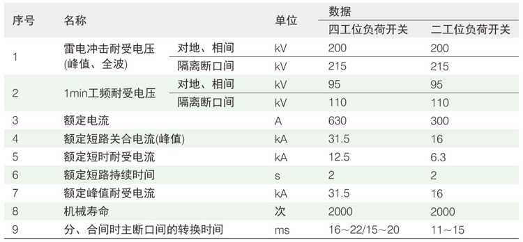 4.2 負(fù)荷開關(guān)技術(shù)參數(shù)