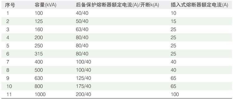 位負(fù)荷開關(guān)或者二工位負(fù)荷開關(guān)、后備保護(hù)熔斷器及插入式熔斷器:低壓側(cè)按用戶要求可裝配控制電器、配電電器、照明檢修變壓器。以變壓器油作為絕緣和滅弧介質(zhì)。
