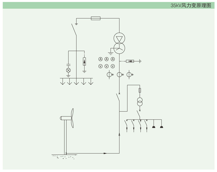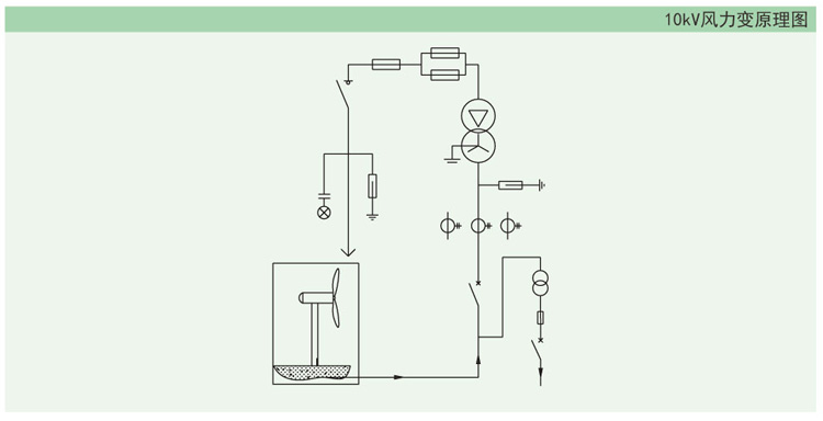 1.1 ZGS11-Z.F-□/□系列風(fēng)力發(fā)電用組合式變壓器(以下簡稱“風(fēng)力變”)。適用于10kV、35kV終端供電系統(tǒng)中,作為變電、配電、計量、控制和保護裝置。風(fēng)力變內(nèi)除裝有變壓器外,高壓側(cè)還裝有四