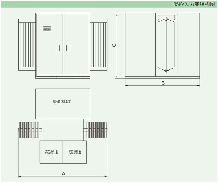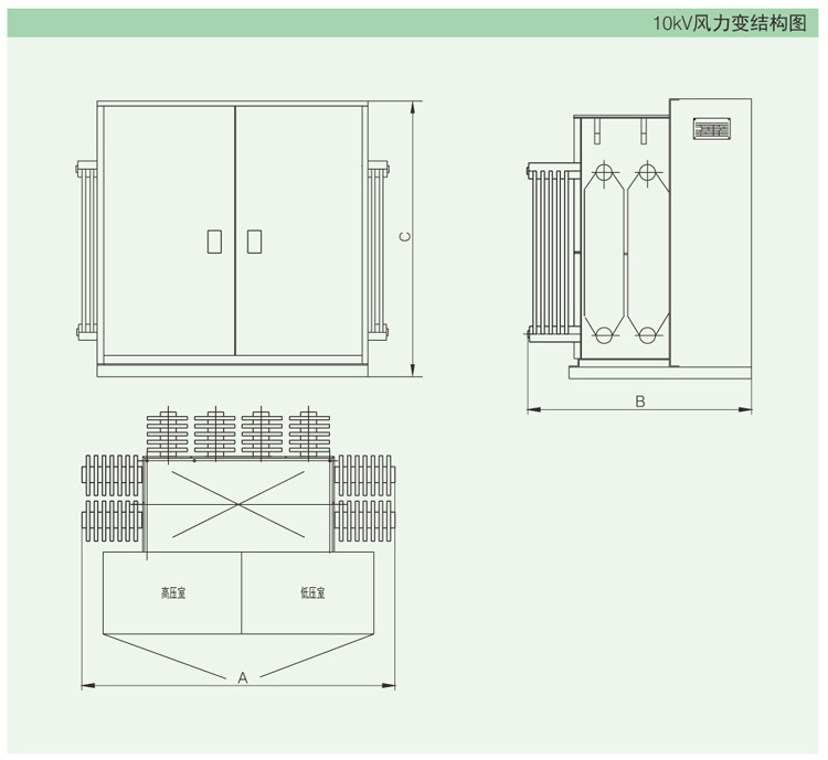 1.2 本產(chǎn)品是滿足日益增長的風(fēng)力發(fā)電的供電要求,在本公司常規(guī)組合式變壓器基礎(chǔ)上消化吸收好的技術(shù)結(jié)合國內(nèi)需求自行開發(fā)的系列產(chǎn)品,該產(chǎn)品具有體積小、重量輕、安裝方便、低噪聲、低損耗、防盜、過負(fù)荷能力大、全范圍熔斷器保護(hù)、維護(hù)簡單等特點。